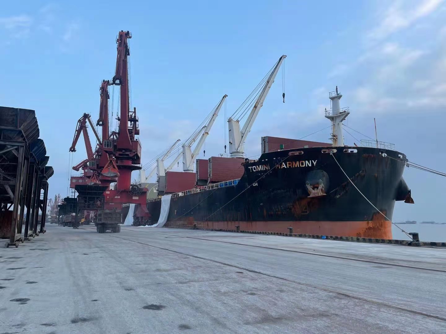 为保证进口肥料在港口不受耽搁,中农控股积极与商务部、海关、港口等相关部门沟通,准备通关、报检手续,并提前将需要灌包的包装袋运送至港口,合理组织人力、装卸、灌包机械,保证化肥随到随装,随装随走,尽快到达田间地头。