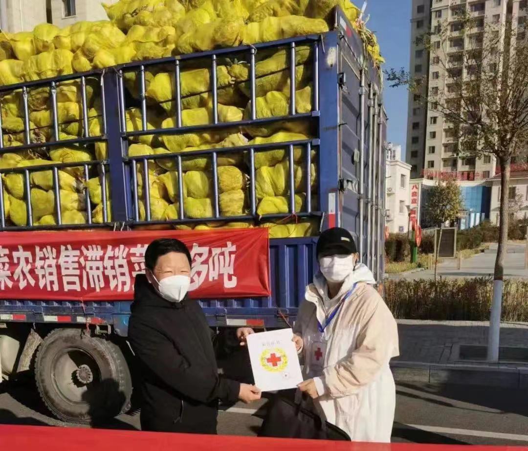 24号上午,满满两车蔬菜分别送到了东河区杨圪楞街道办和东兴街道办。在现场,志愿者把经过检测消毒的一袋袋新鲜蔬菜搬下车,由街道配发到社区,重点慰问一线抗疫人员、志愿者和困难居民。