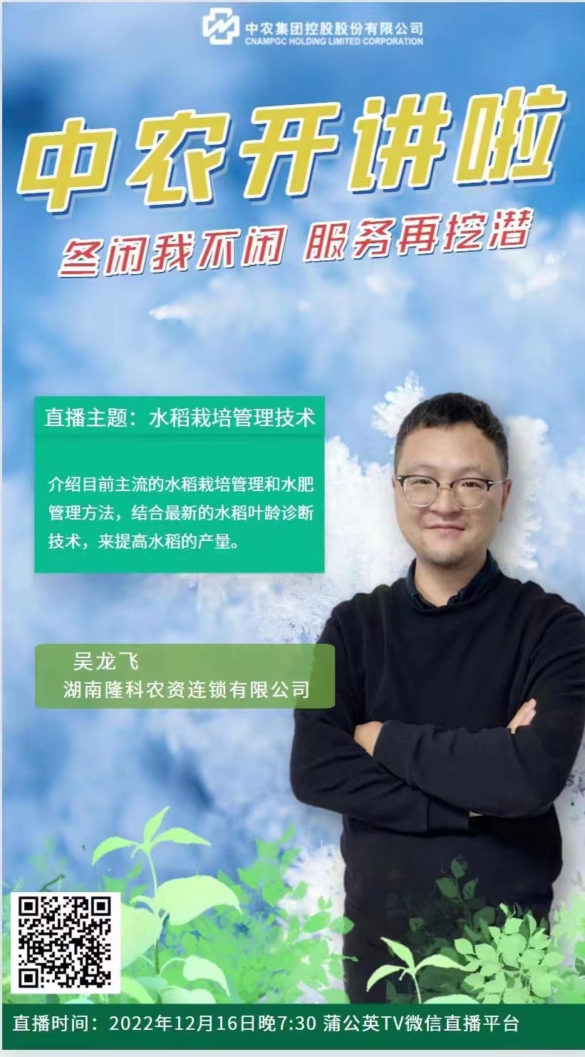 2022年12月16日-2023年1月18日,《中农开讲啦》将联合供销社系统直播平台蒲公英TV共同打造“冬闲我不闲,服务再挖潜”之农资有话说专题直播活动,为大家呈现一场知识分享盛会,相约中农开讲啦线上直播间,一起蓄能充电吧!