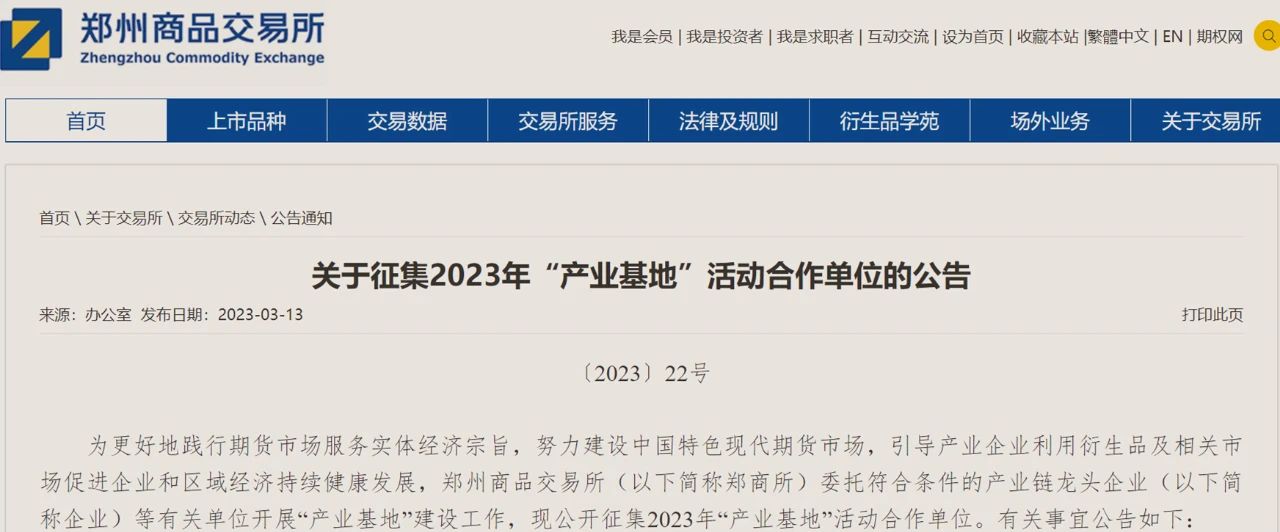 5月17日,中农控股成功获批郑州商品交易所(以下简称郑商所)2023年“产业基地”合作单位。