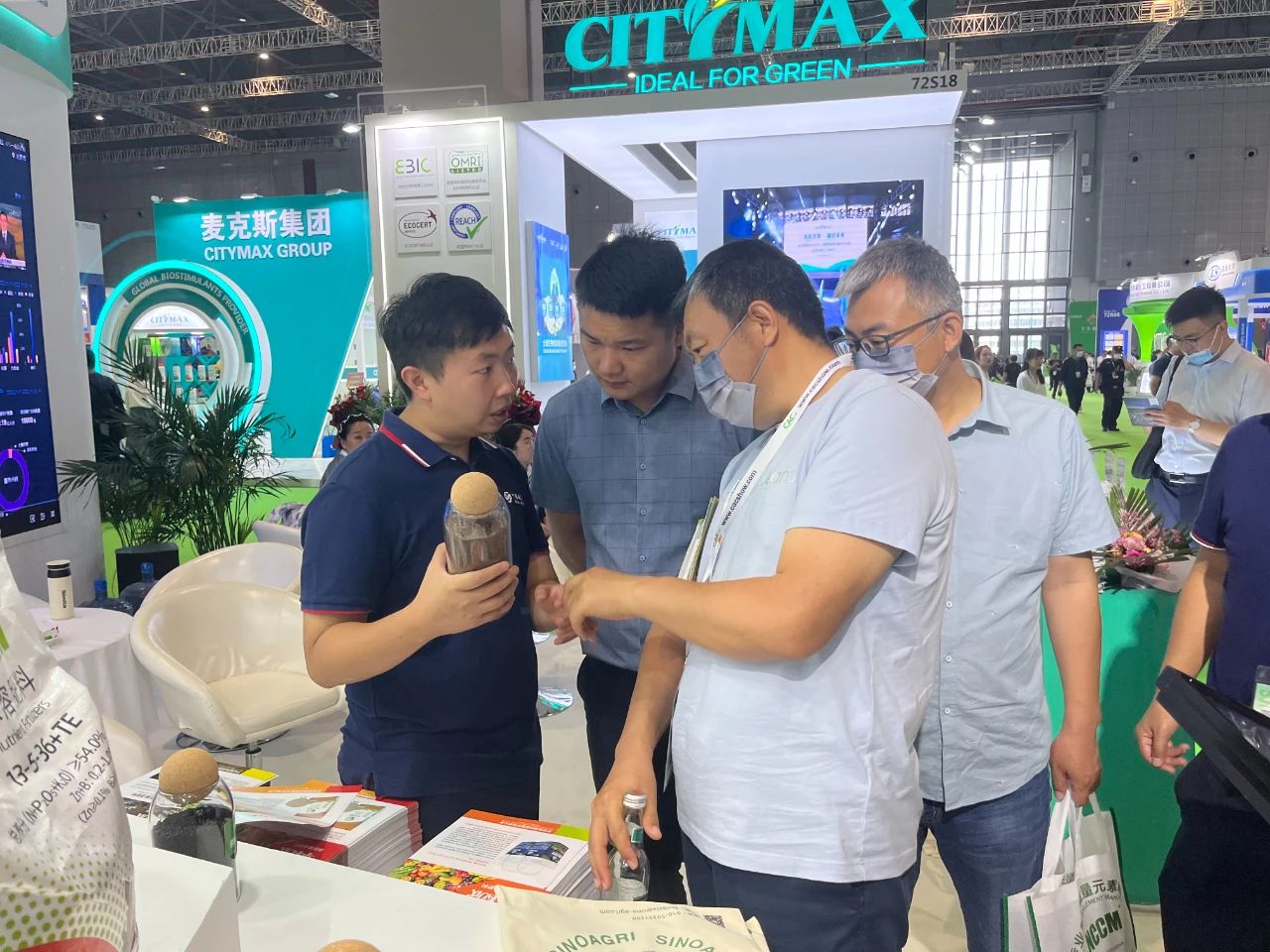 展会现场,中国农资“绿色家族”系列产品——液体缓释氮肥、海藻寡糖、植物免疫蛋白、氨基酸系列、微生物系列、有机+无机等绿色产品悉数亮相,吸引了众多展商代表驻足观看,业务团队为前来咨询的国际友人详细介绍公司优势,来自马来西亚、印度、韩国、新加坡等国家的新老客户走进公司展台洽谈交流。