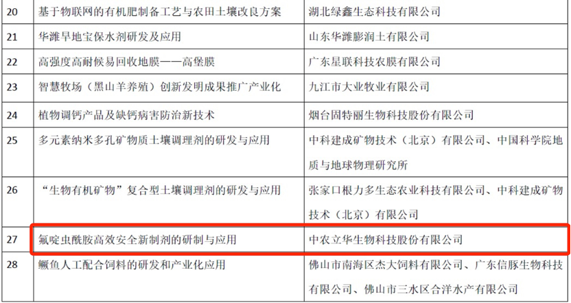 6月10日,在首届“中国农业企业科技成果转化与创业创新大会”优秀科技成果评审会上,中农立华“氟啶虫酰胺高效安全新制剂的研制与应用”被评为优秀科技成果。