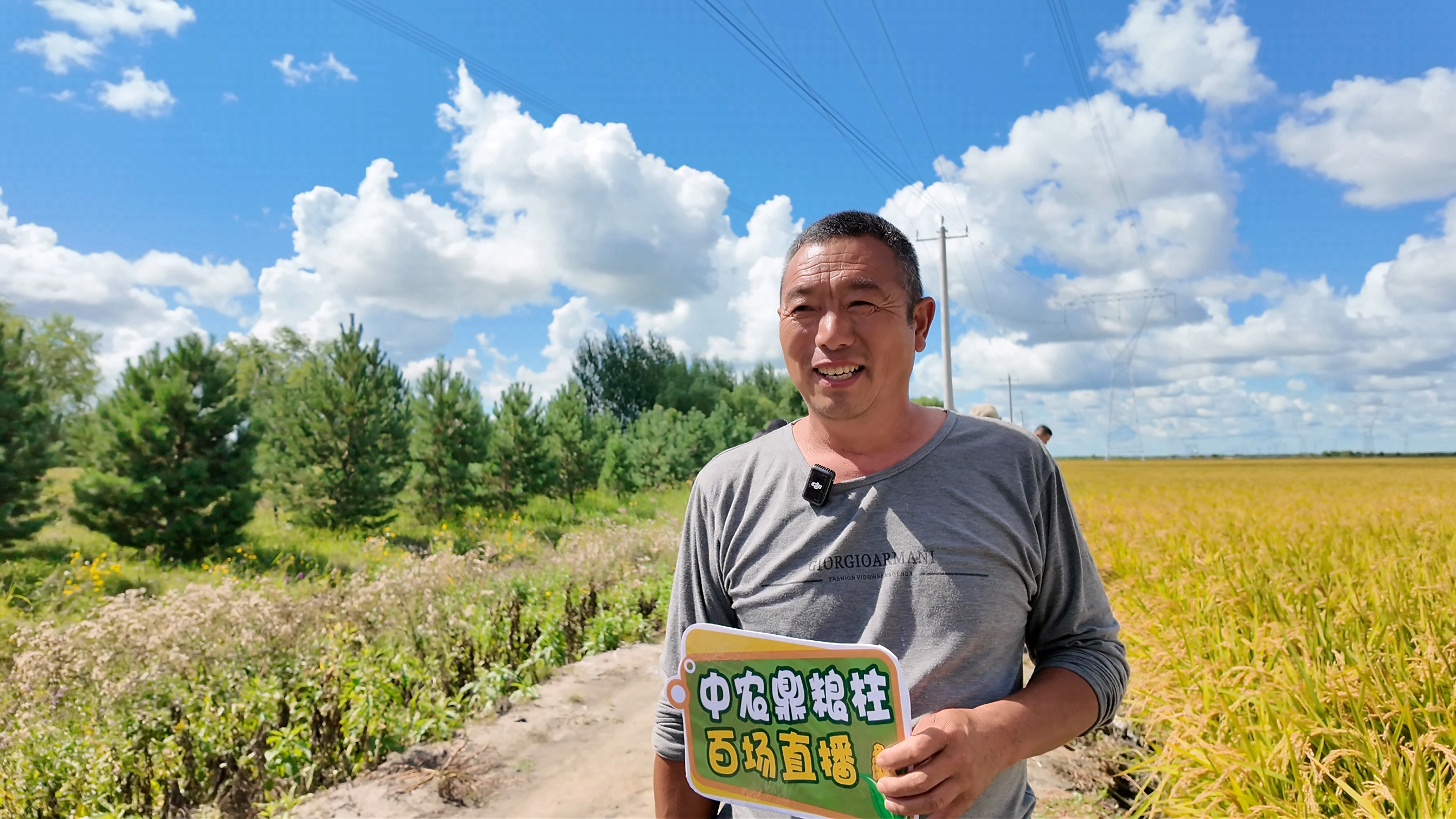 “家人们请看,在我左手边的1000多亩地,全部应用了‘中农鼎粮柱’方案;右手边是对照区,两边的差别一眼就能看出来。”在位于齐齐哈尔市梅里斯区哈拉海农场的一片稻田旁,中农立华黑龙江省高级应用技术主管孙喜臣正在手机前直播讲解水稻丰收的技术要点。