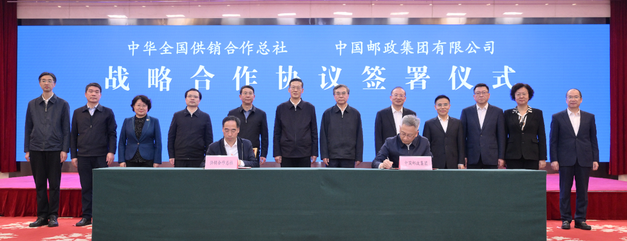 11月15日,中华全国供销合作总社与中国邮政集团有限公司在京签署战略合作协议。总社党组书记、理事会副主任韩立平,中国邮政集团有限公司党组书记、董事长刘爱力出席签约仪式并围绕双方加强合作进行座谈。