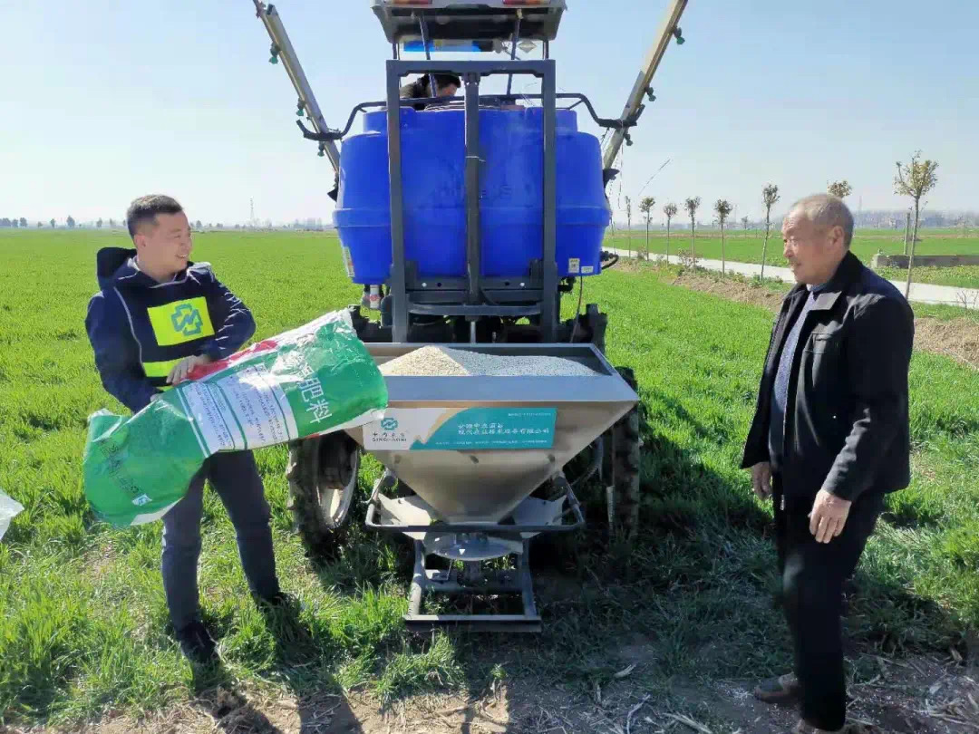 中农农资(阜阳)服务中心技术服务队在为种植户杨凤军的小麦田追肥