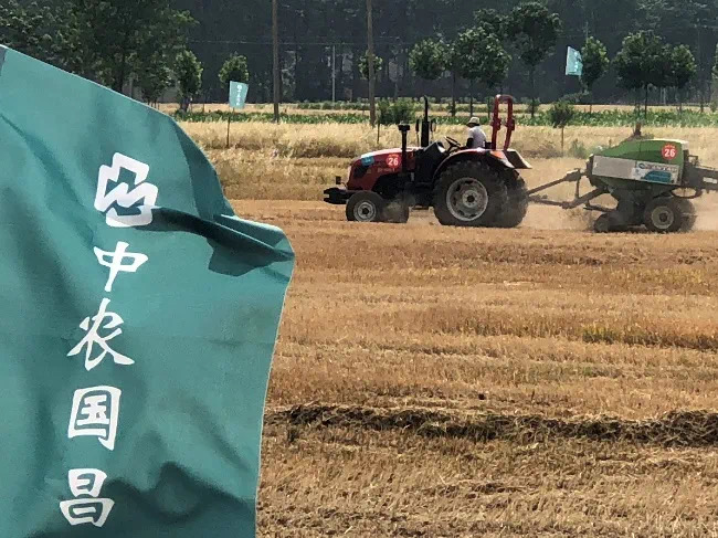 中农农资(阜阳)服务中心作业服务队在进行秸秆打捆作业服务
