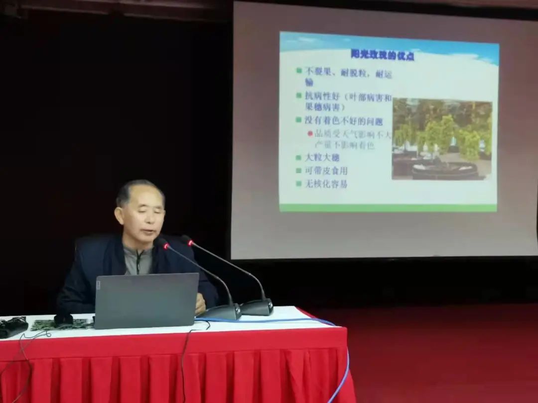 刘教授为种植户详细讲解了种植阳光玫瑰的每一步工作、每个生长期的管理重点、当前时期最主要的准备工作以及应对4月上旬小寒潮的保护措施。原计划会议人数200余人,结果实际参会人数超过340人,种植户对种植技术的渴求超乎预期。