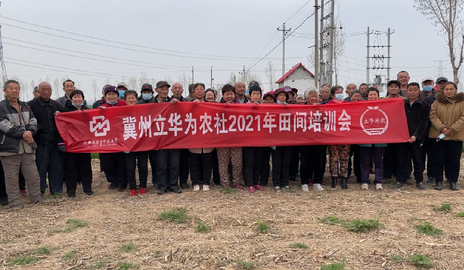 近日,在衡水市冀州区“立华为农社”举办了一场小麦条锈病防治示范会,四十多名农户冒着细雨,一大早便来到示范田参观学习。