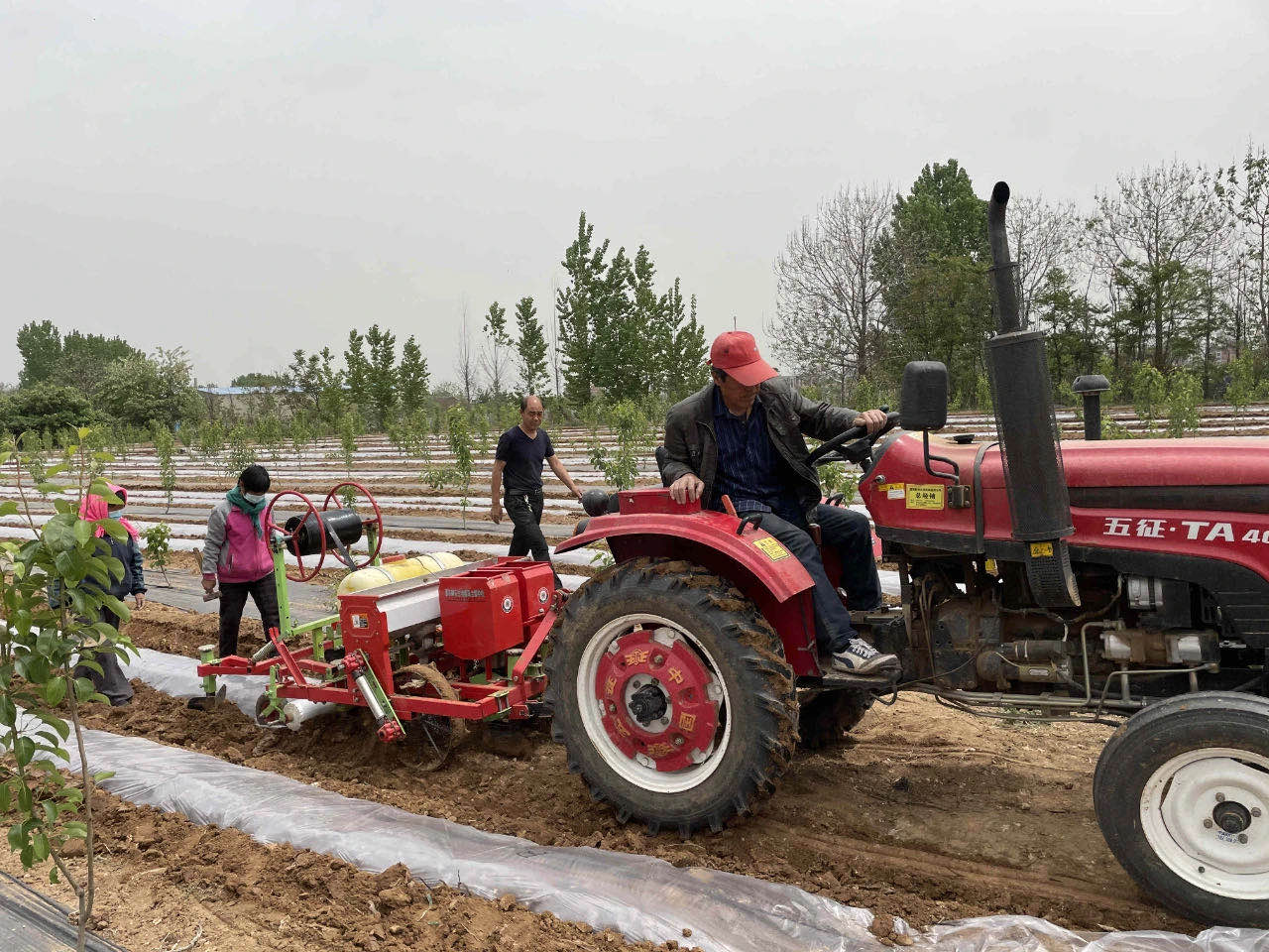 开沟、下种、铺膜、覆土……在整个地膜铺设过程中,中农通用和博禄公司工作人员与农民一同,起早贪黑,按照预定要求圆满完成了任务。最后在铺设完毕的地块上,按照各个对比组,对铺设的试验地膜做了标记,以方便后续试验数据采集、检测、收集、对比,保证最终试验结果的科学准确性。