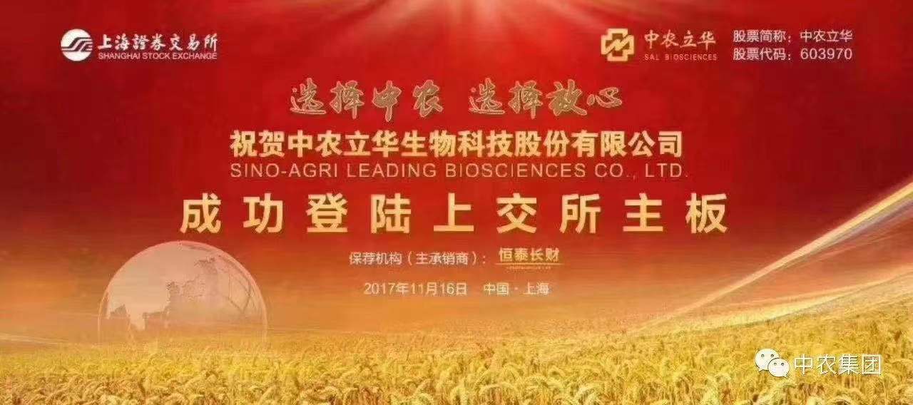11月16日,中农集团下属中农立华(股票代码:603970)在上交所主板挂牌上市,成为中华全国供销合作总社出资企业中第一家IPO企业。
