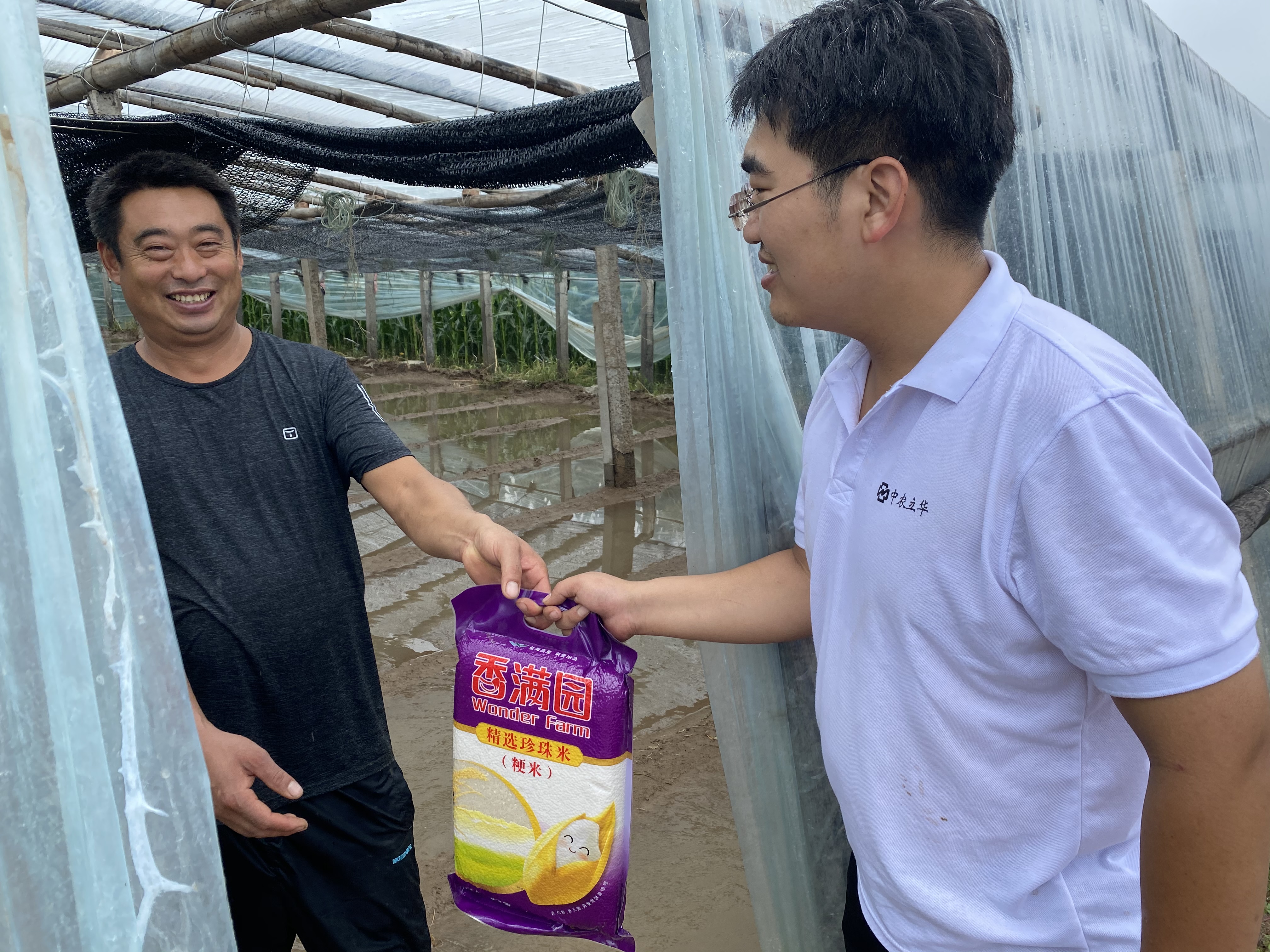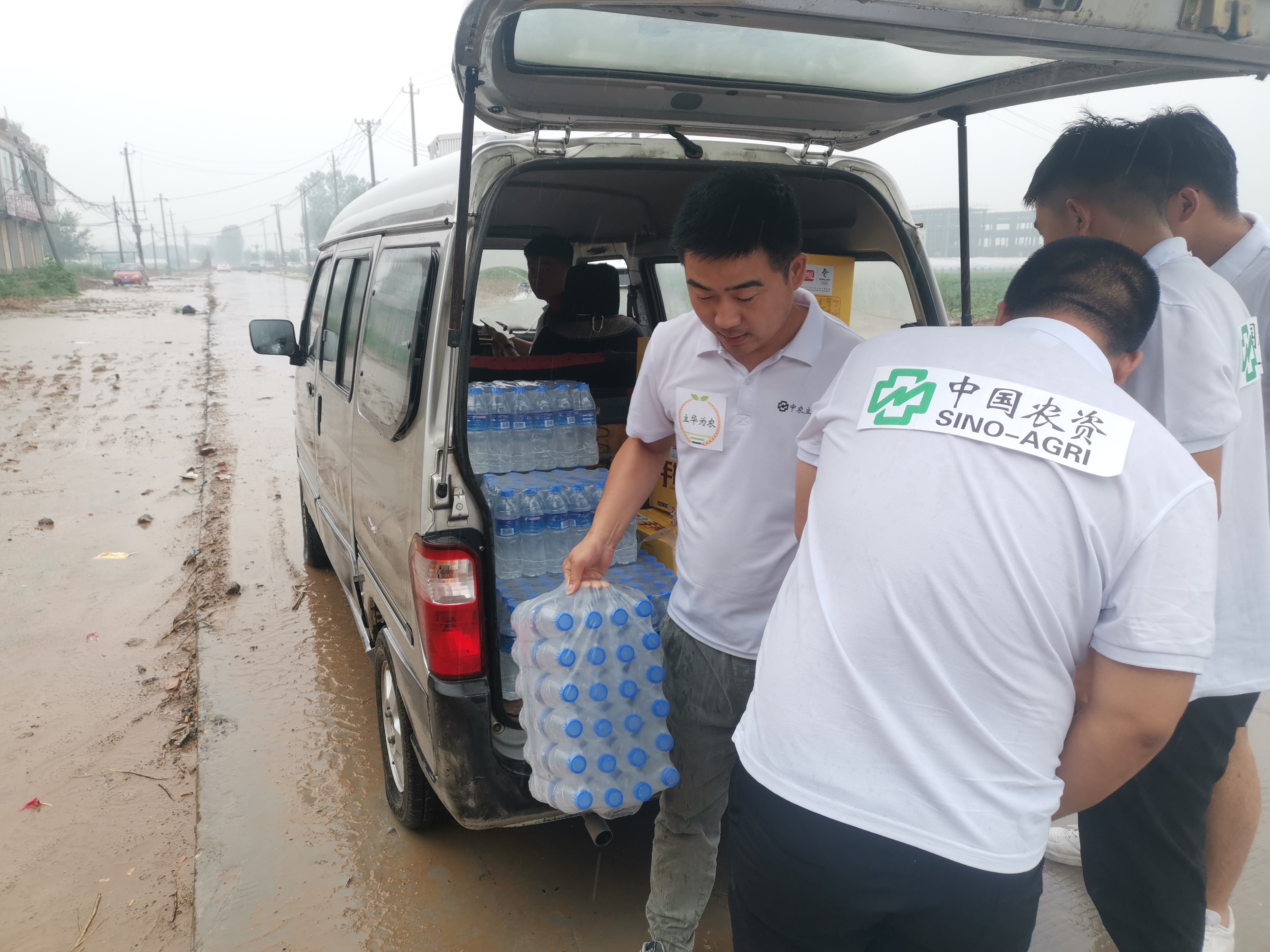 排水抗涝让农户们连饭都吃不上,中农立华的工作人员采购了一批饮用水和食物,冒着大雨给农户送到田间地头,解决农户的吃饭问题。