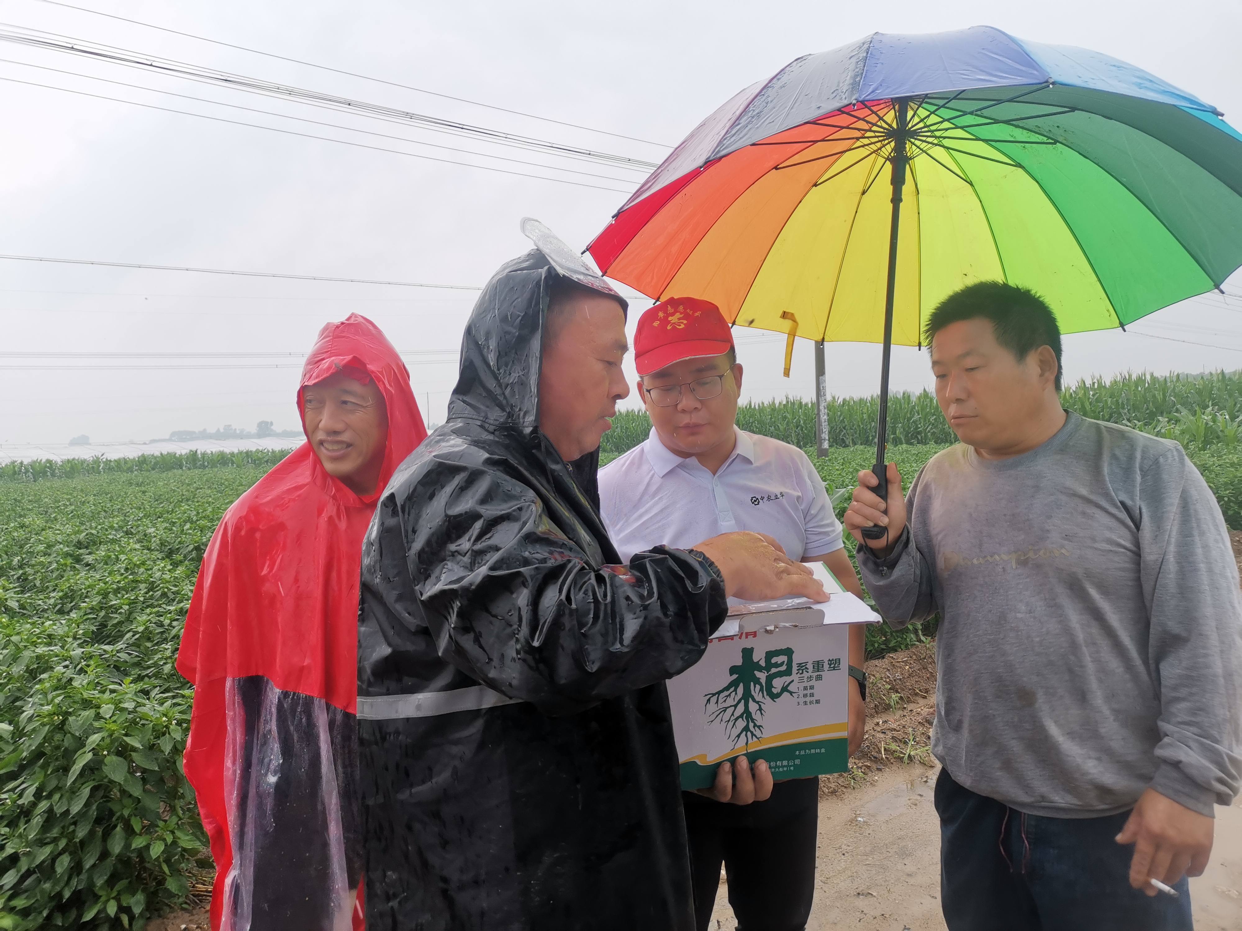 许多农户大棚里都进了水,经历涝灾的农作物抗性普遍比正常植物低,易发病,中农立华技术团队来到农户棚里查看进水情况,并及时为农户讲解水灾幼苗救护指导,同时针对农户棚内进水后作物根系呼吸受阻、病害爆发引起的死苗等问题给与指导,为农户提供根系重塑解决方案。