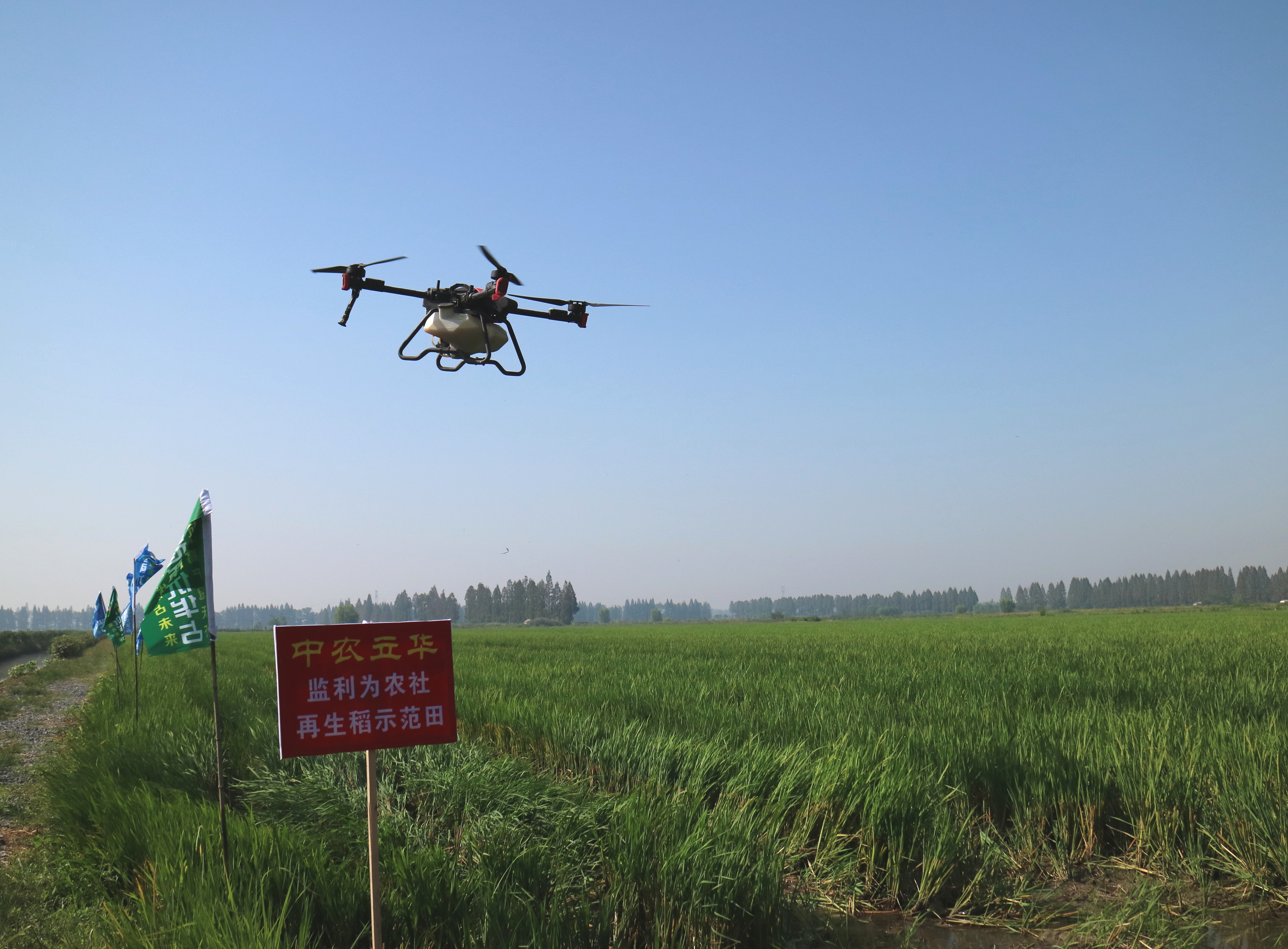初秋九月,位于湖北荆州监利县的中农立华再生稻示范田中,农户遥控的飞防无人机悬在稻田上方缓慢移动,发出阵阵轰鸣,掀起一阵绿色波浪。头季水稻已于8月初收割,此刻,刚刚抽穗的再生季水稻正在风中轻轻点头。中农立华建设的中国农资®·监利服务中心用优质的产品、贴心的服务保障水稻量质齐升。