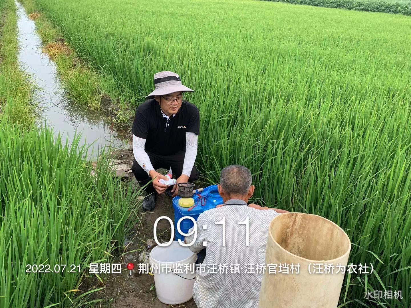 ®·监利服务中心的农技人员每星期都要到合作农户的示范田地巡察,回访7-8次,详细记录农药产品使用前后水稻田的变化,每年平均办10次观摩会,持续推出农技短视频和直播,为农户提供贴心服务。