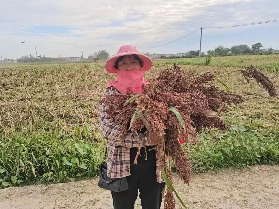 在安徽阜阳颍上县谢桥镇万庄村,种植户万法兵3000亩高粱喜获丰收。看着一颗颗红高粱从收割机仓门倾泻而下,万法兵的脸上乐开了花。