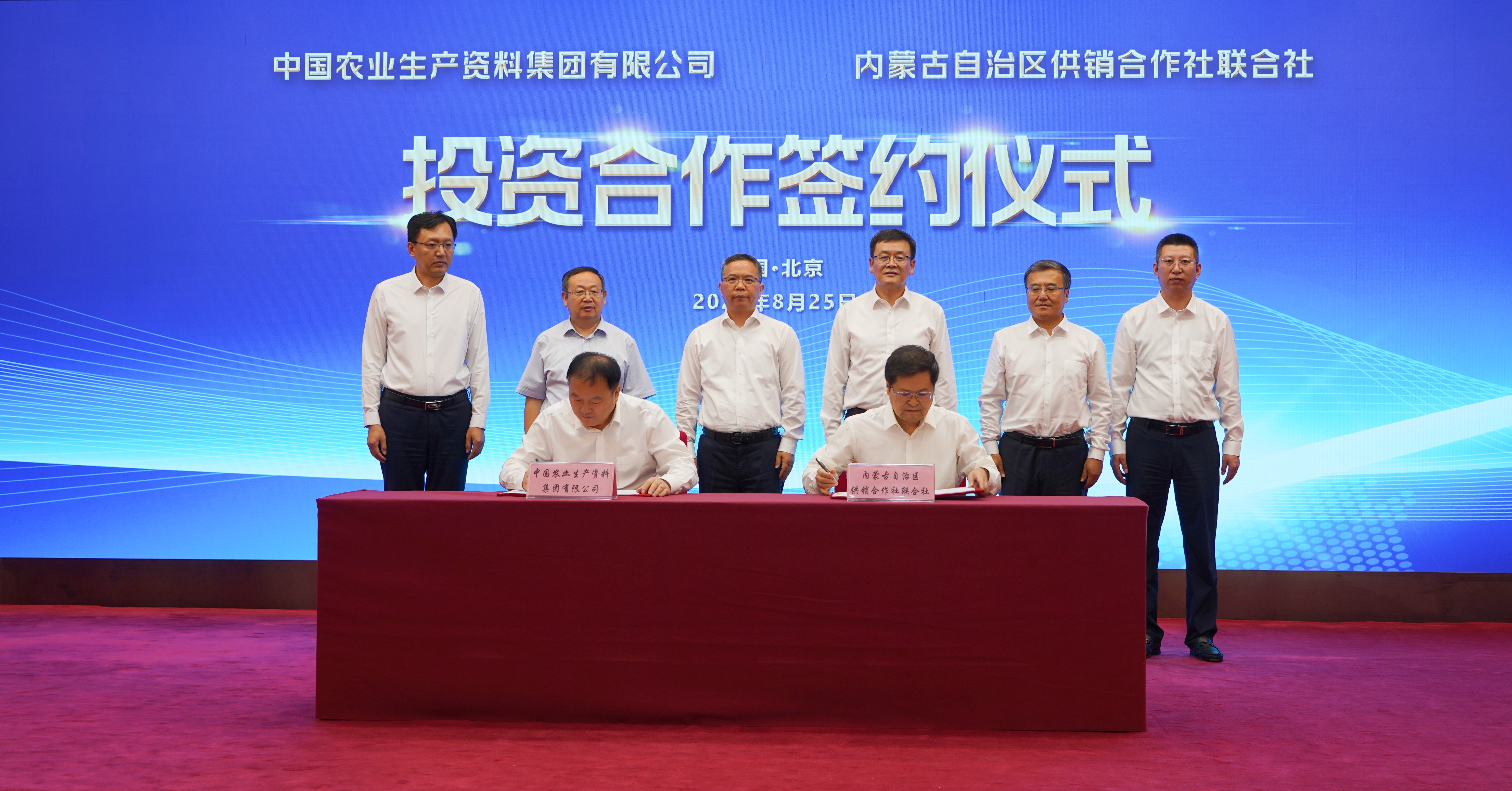 8月25日下午,中农集团与内蒙古自治区供销合作社在京举行战略合作协议签约仪式。中华全国供销合作总社党组成员、理事会副主任,中国供销集团党委书记、董事长侯顺利,内蒙古自治区政府副主席、党组成员杨进出席签约仪式并致辞。中国供销集团党委副书记、总经理康玉国陪同出席。中农集团党委书记、董事长郝彦领与内蒙古自治区供销合作社党组书记、理事会主任那炜清分别代表双方签约。