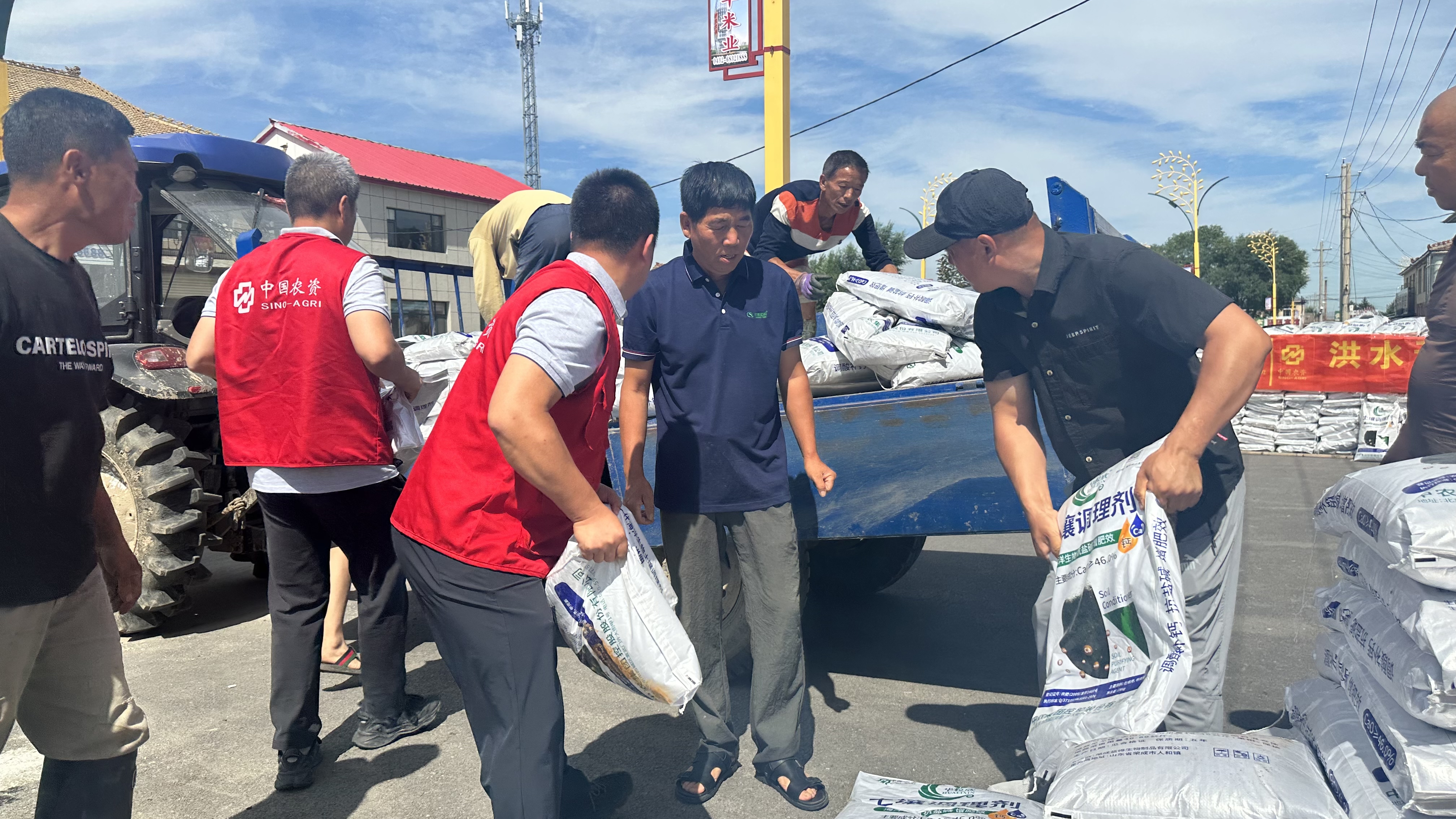 今年7月,受台风影响,河北、吉林等地出现强降雨天气,多地出现内涝,影响了当地的农业生产。中农控股农业服务事业部第一时间组织张森、梁世博等农服人员深入灾区,调查农田受灾情况,向受灾严重的地区捐赠肥料产品80余吨,助力保障受灾地区的农资供应。