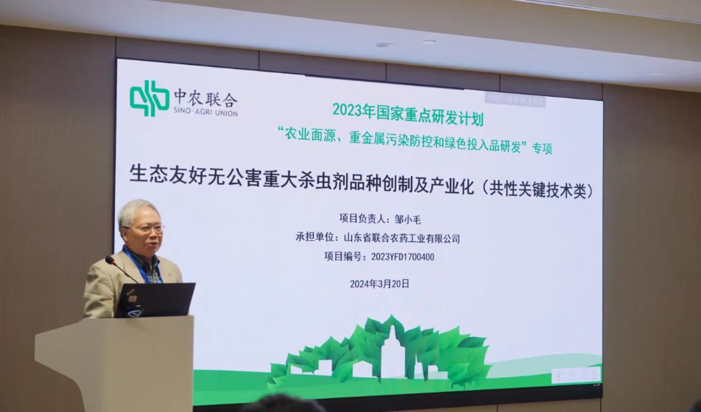 3月21日,由山东中农联合生物科技股份有限公司承办的“十四五”国家重点研发计划“农业面源、重金属污染防控和绿色投入品研发”专项——“生态友好无公害重大杀虫剂品种创制及产业化”项目启动会在山东济南隆重召开。项目汇聚南开大学、天津大学、复旦大学、浙江大学、山东农业大学、青岛农业大学等知名院校的专家教授,旨在通过产学研协同创新,打造具有国内乃至国际重大影响力的绿色创制杀虫杀螨剂品种,为保障国家粮食安全和虫螨抗性治理保驾护航。