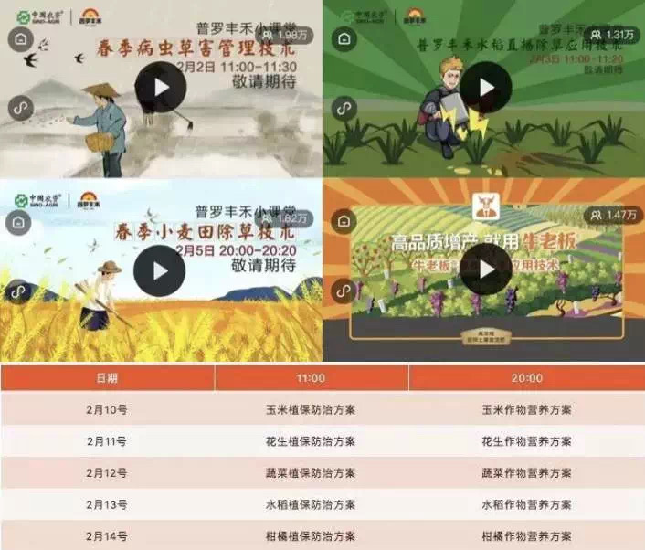 中农立华发动600多名技术服务人员,提供远程技术指导、产品使用说明、田间种植管理等支持。旗下的中农普罗丰禾全面启动“新春财富电波项目”和“普罗丰禾小课堂”两个项目,提供专业种植技术培训。2月1日起,“新春财富电波项目”开设掌上微课,为种植户提供从大田作物、经济作物到果树作物的营养与植保应用技术服务。截至目前,课程已进行18场,观看人数超过25万人次,每场观看人数均超过10000人,取得了良好效果。