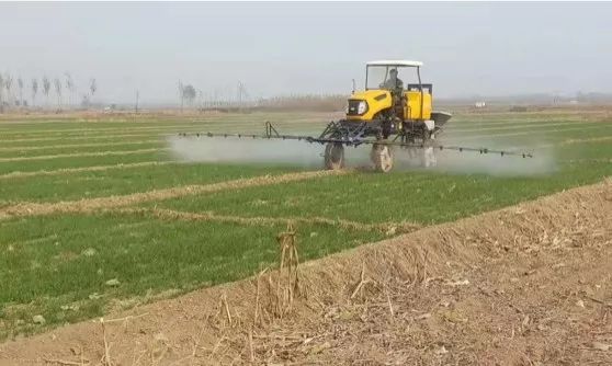 在石家庄藁城的地头,一派春意盎然的景象。中农立华旗下中农丰茂生产的自走式喷杆喷雾机为当地5万亩小麦进行了除草作业,帮助当地抢抓农时,同时助农户实现省钱、省时、省力。