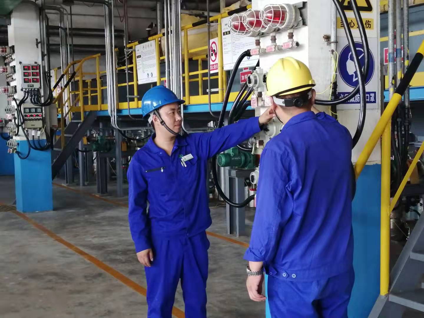 2015年,车间在试生产阶段,他发现离心机设备在放料过程中易发生漏料现象,致使物料收率偏低,同时因漏料物料分布不均致使离心机振动较大,增加了现场操作的危险性,于是便向公司领导反映并提出改用板框式压滤机的建议。经公司研究决定,2016年全部改为板框式压滤机,通过本次改造,不仅解决了收率及安全问题,而且减少了用工人员,离心岗位由原来的每班4人精简为每班2人,为公司减少了用工成本。