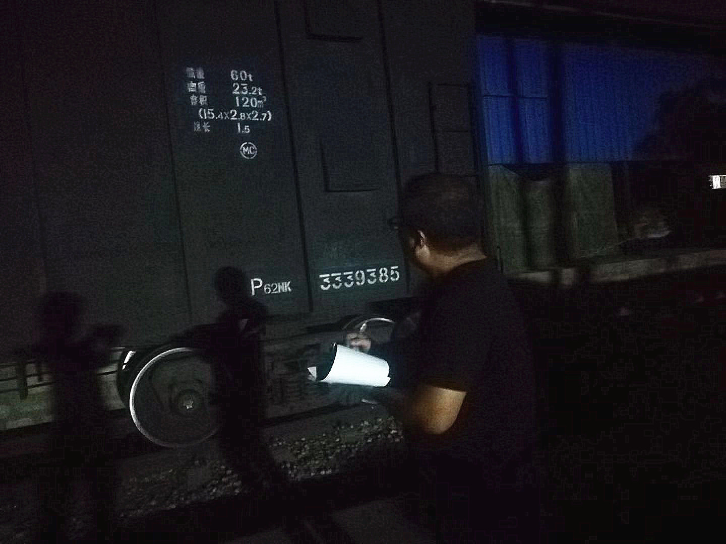 夜晚抵达的农资,刚刚停靠在货台旁边的铁路线上,作为值班巡检人员的我,认真对车皮进行详细登记,并按照相关程序点验、记录货物数据。中秋夜不能和家人团聚有些遗憾,但为了工作,一切都值得。