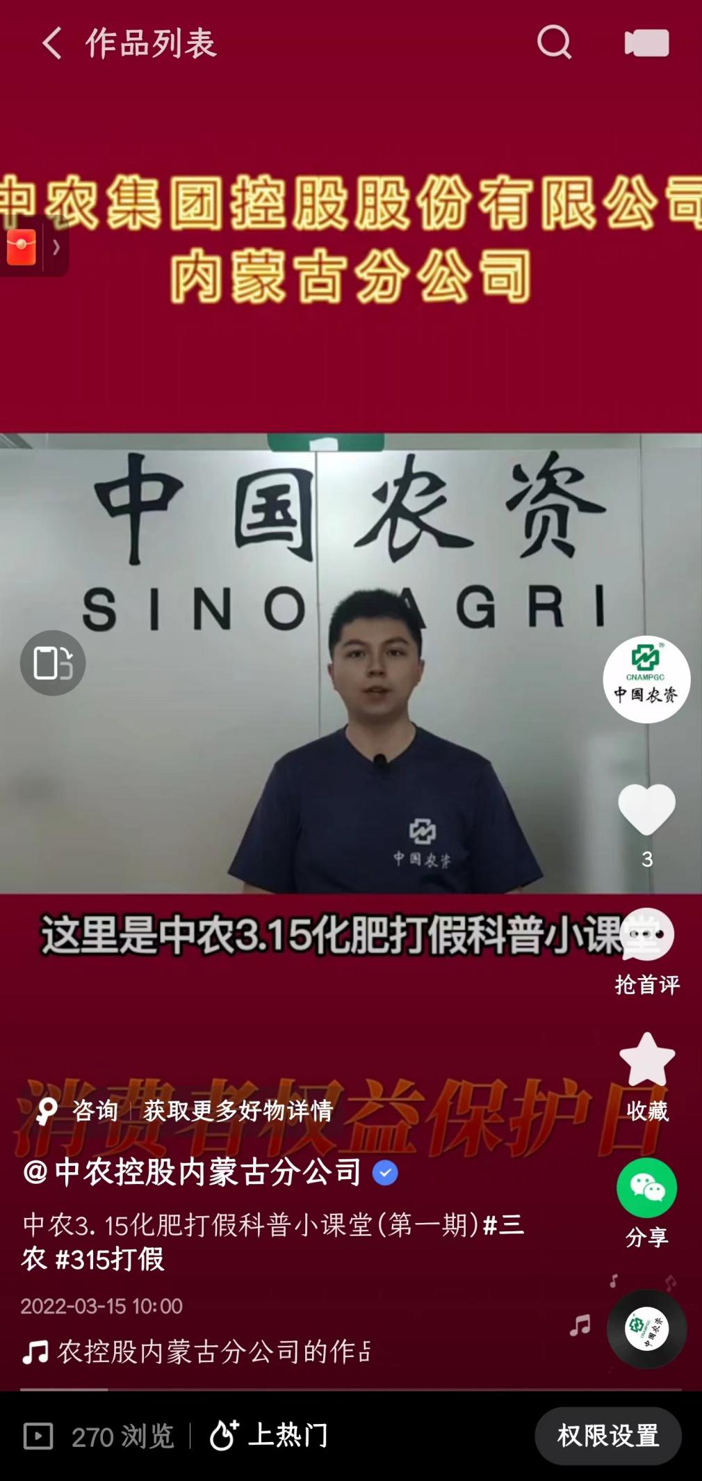 中农控股内蒙古分公司张宇庭,积极开展线上线下培训会议,2021年6月-2022年4月累计组织线下线上培训会50场,组织开展公司内部培训27场,累计参与建设试验示范田25块,试验示范田规模共计7485亩,累计发布短视频66个。2022年1月-2022年4月为28个生产合作社及种植基地制定施肥方案,并销售产品2000余吨,个人累计服务面积超11万亩。