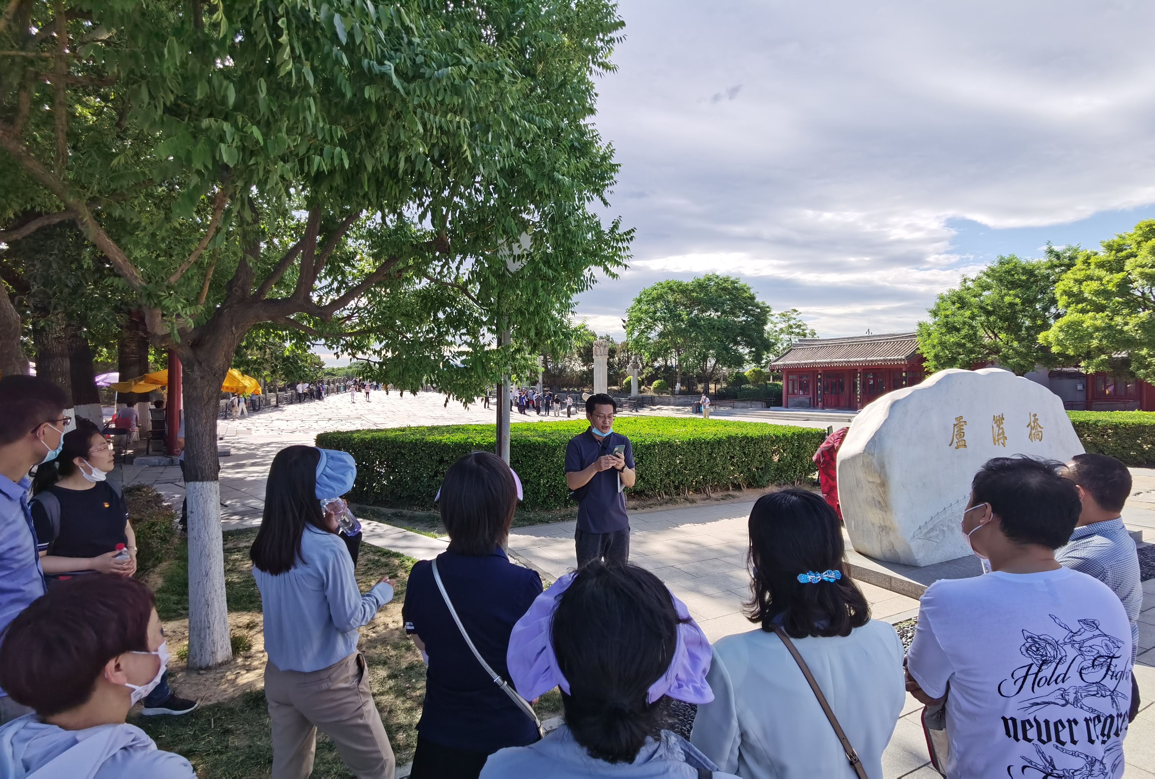 随后,党员们来到位于宛平城外的卢沟桥遗址,1937年7月7日,日本帝国主义在此发动了全面侵华战争,在日军对中国宛平城守军发动袭击之后,全面抗战爆发,中华民族也开始了浴火重生的不屈斗争。八十多年过去了,卢沟桥的烽火硝烟已然逝去,但战争给整个中华民族留下的惨痛伤疤,就像宛平城城墙上的弹孔一样,无法磨灭。走在本是中国古代文化建筑但却历经战火蹂躏的卢沟桥上,党员们似乎感受到了那一刻的民族危亡和全民浴血奋战的坚韧顽强,深深地体会到如果没有当年英勇无畏地抵抗,就不可能有如今的和平繁荣,对革命先烈崇敬之情油然而生。