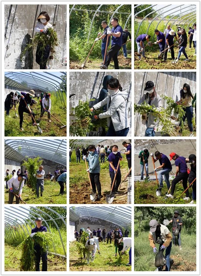 参观完服务中心,大家走进当地村民的一块农用耕地,撸起衣袖、拾起工具、弯下身子,除草、翻地、抛草,经过一个多小时的劳动,杂草丛生的荒地已被平整为连片土地。下午,大家又来到平谷桃园,帮助村民捡拾农业废弃物。