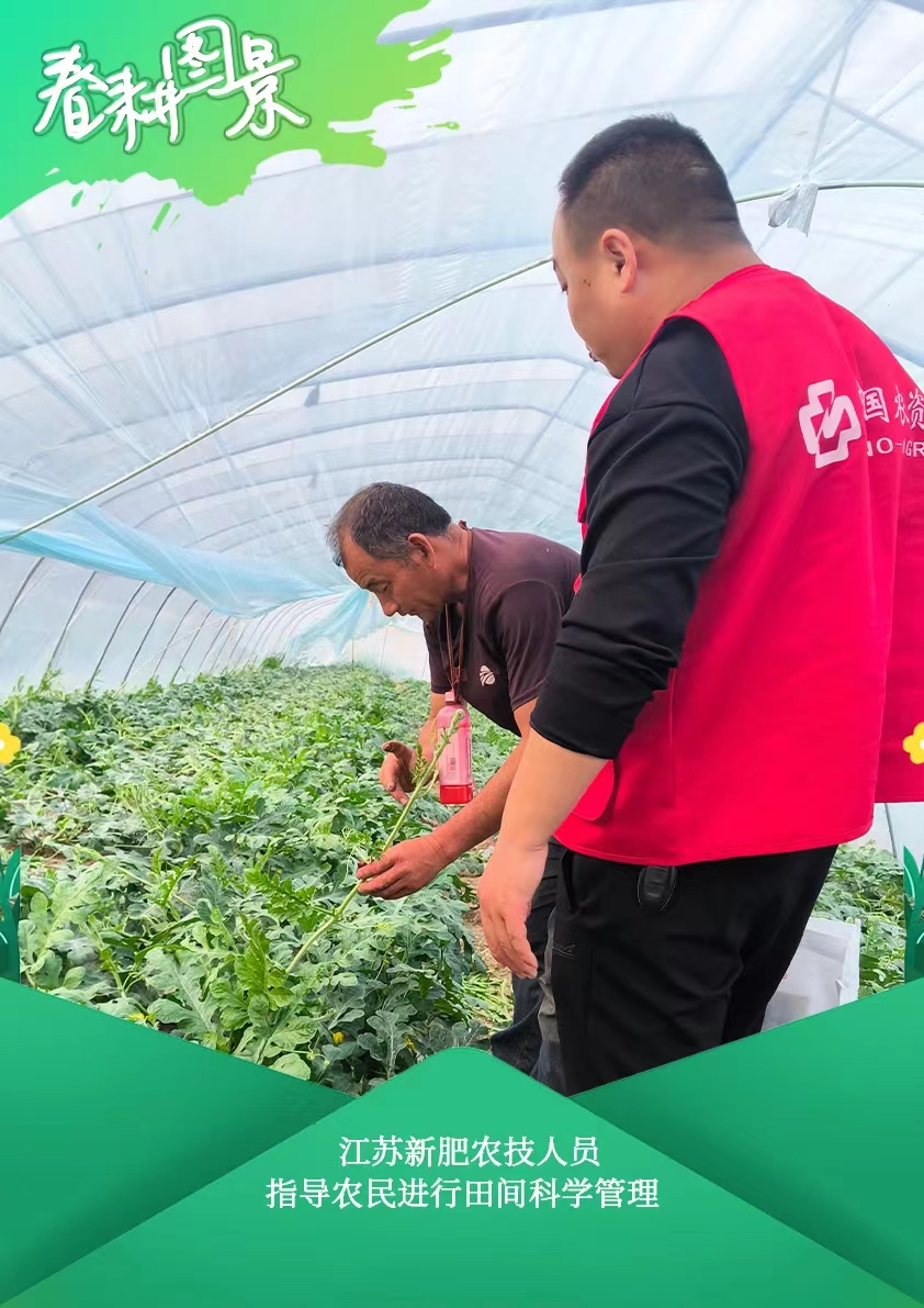 江苏中农新肥公司农服人员来到安徽省怀远县万福镇回访西瓜底肥的施用效果,指导农户进行科学管理,提供个性化施肥方案,通过优质服务助力瓜农增产增收。