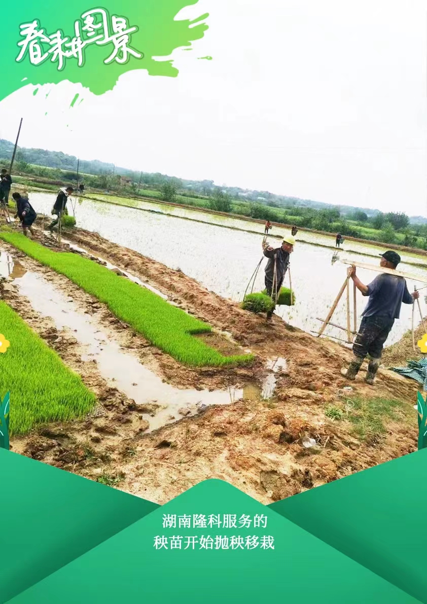 湖南隆科农技推广部在常德四新岗镇服务的育秧田长势良好,长势最好的秧苗已经开始进行抛秧移栽工作。