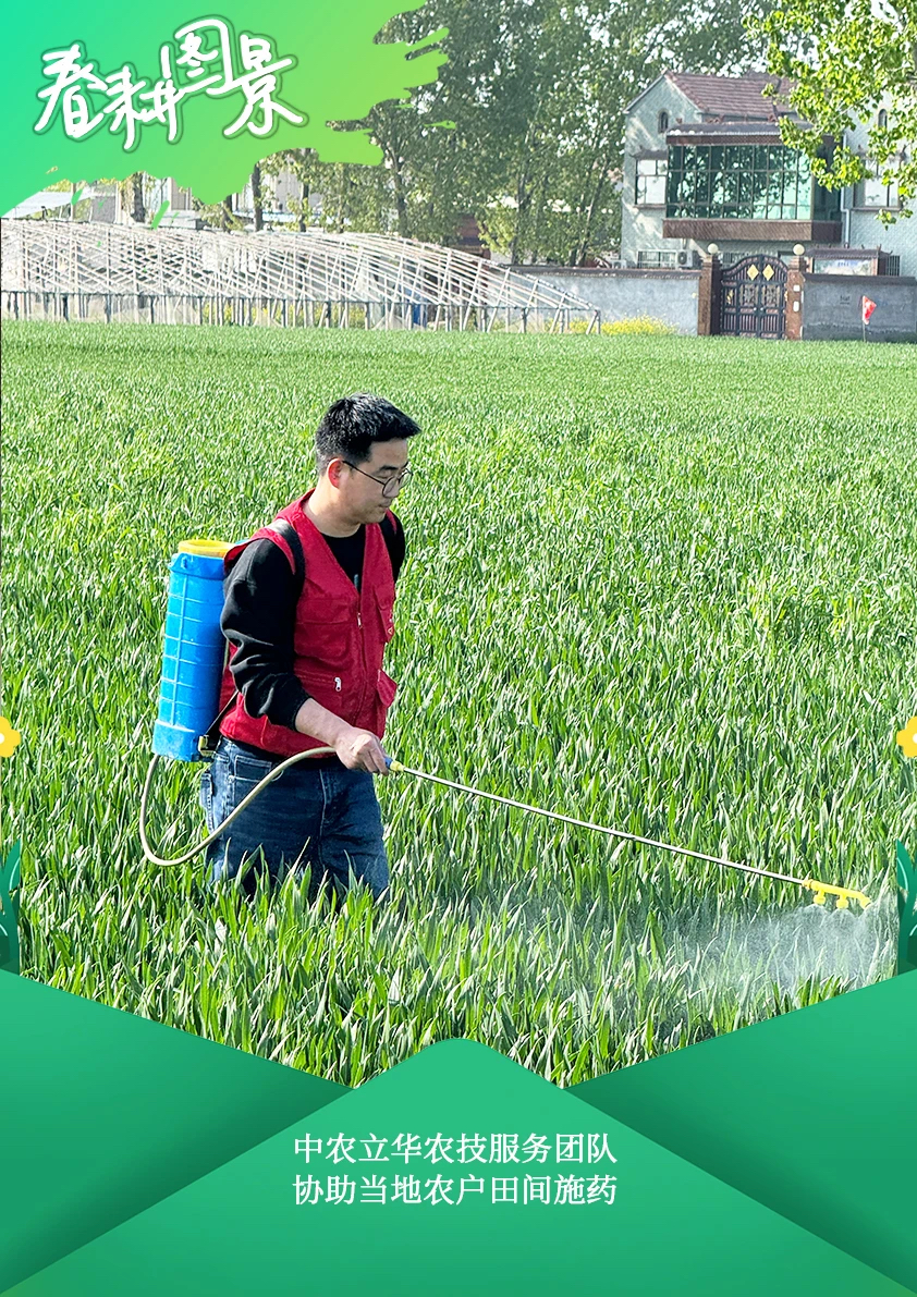 河南滑县的180万亩小麦正处于拔节孕穗期,中农立华河南团队的农技服务人员每天在田间地头指导农户科学施药,提供作物健康解决方案,帮助解决种植难题,助力小麦高产。
