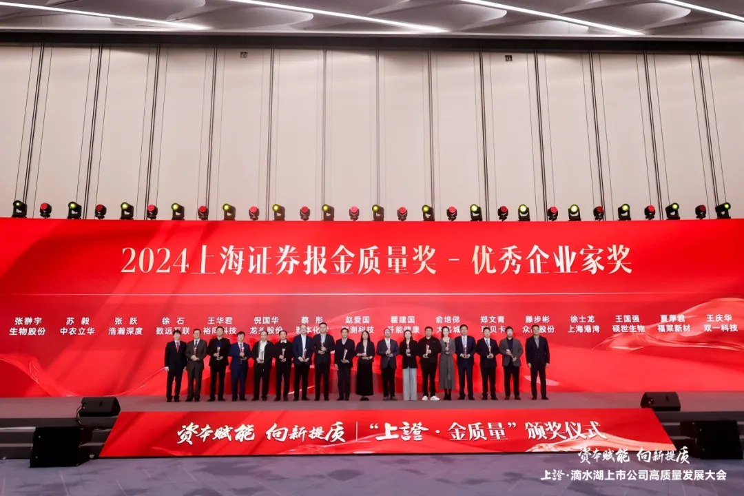 12月27日,由上海证券报主办的“2024上市公司高质量发展大会暨‘上证·金质量’颁奖仪式”在上海隆重召开。
