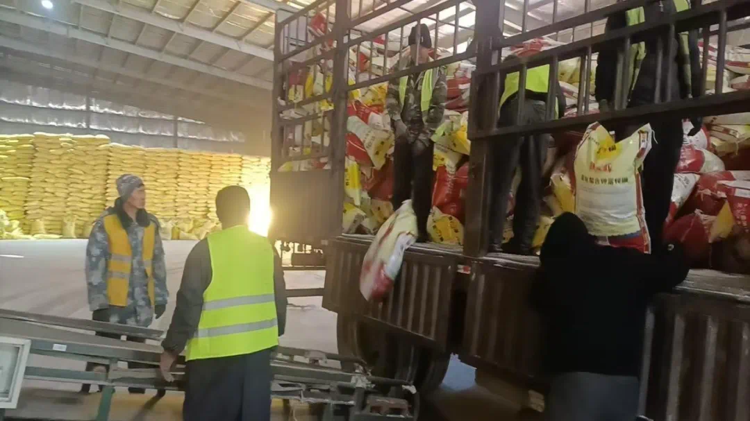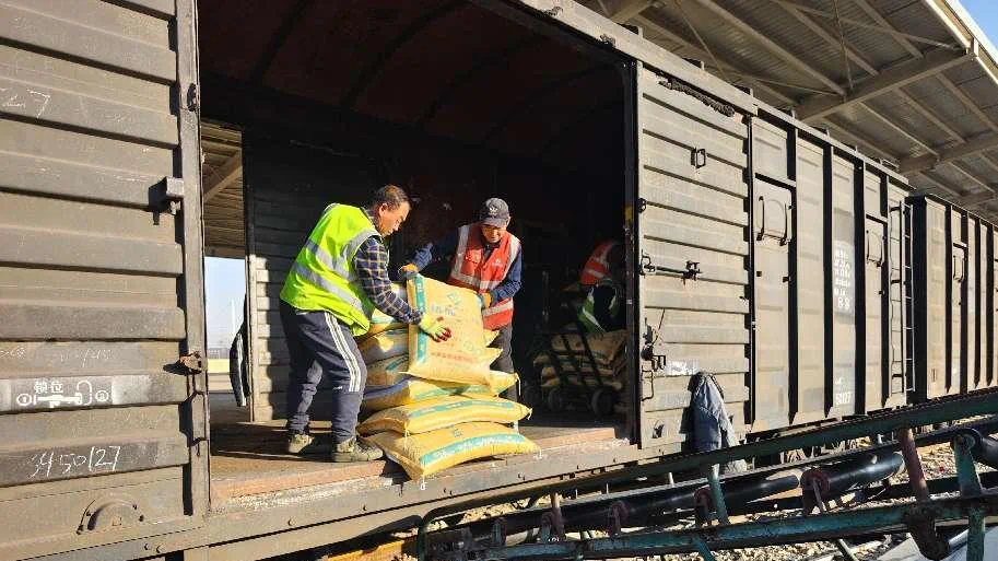 春节期间,当满载化肥的列车到站后,中农(内蒙古)农资公司员工冒着严寒,坚守一线,紧张有序地组织卸货、清点、搬运等工作,为春耕农资保供做好准备工作。