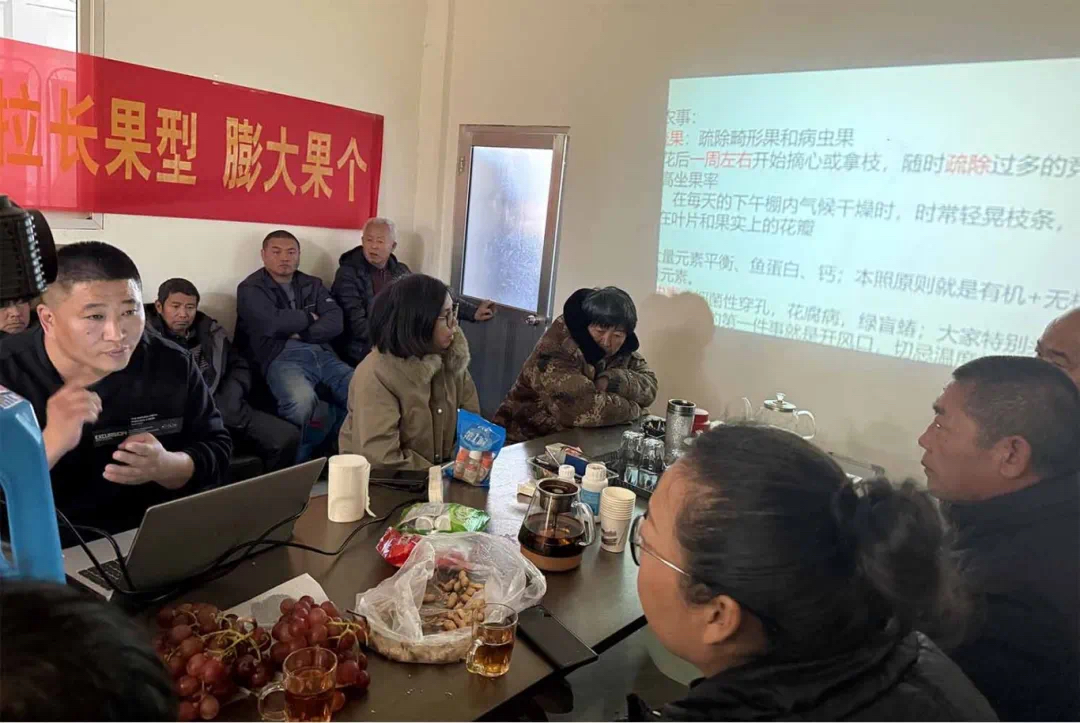 中农控股山东分公司农服人员来到位于烟台海阳市徐家店镇经营网点,调研当地种植户们对于大樱桃管理过程中的难点,针对问题提供了解决方案。