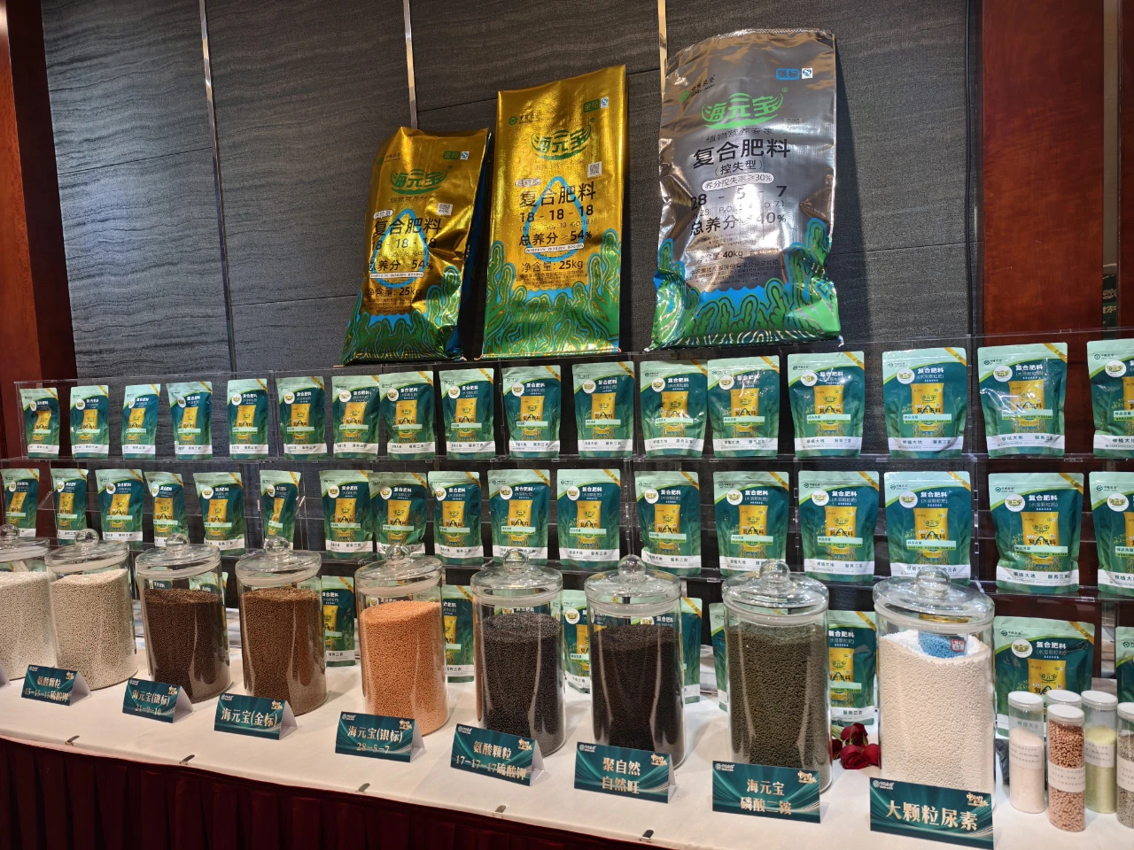 “海元宝”系列新品,具有长效省工、保水保肥、提质增产等多个卖点,产品添加了生物刺激素、螯合微量元素、硝化抑制剂等多种增效物质,能够活化土壤中的有益微生物,提高土壤肥力,促进根系发育和作物生长,提升抗寒、抗病能力,改善作物品质;同时,产品具有良好的水溶性,适用于喷灌、滴灌等灌溉系统,为农户用肥提供便利。