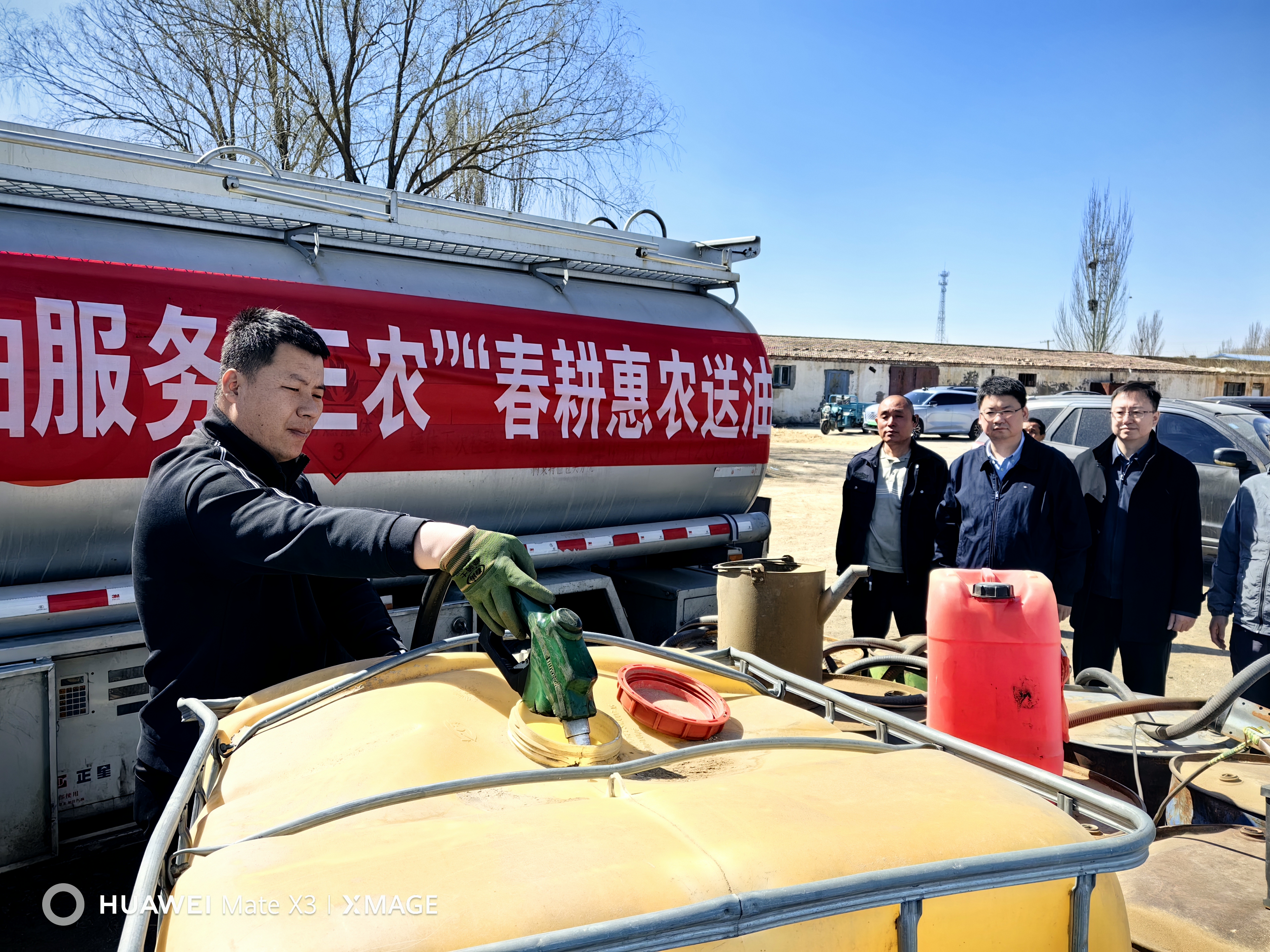 送油下乡活动现场,供销石油内蒙古公司为当地16家农机户加注柴油4.8吨,为3家较偏远的农场和专业合作社提供上门送油3.2吨。