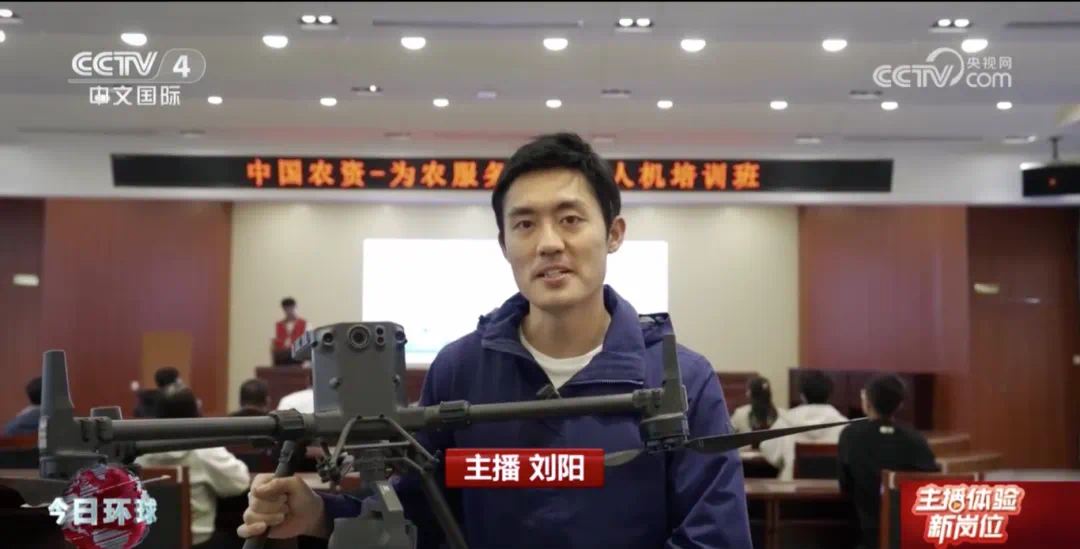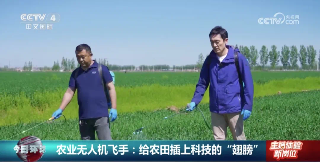 传统农业,面朝黄土背朝天,效率低,强度大。“五一”期间,中央广播电视总台中文国际频道(CCTV4)推出“五一”特别节目《主播体验新岗位》,其中主播刘阳来到天津武清的田间地头,在中国农资·(武清)为农服务中心体验了一把炫酷的新职业——农业无人机飞手,带广大观众朋友感受科技如何为农业插上“翅膀”,让农民告别繁重的体力劳动。