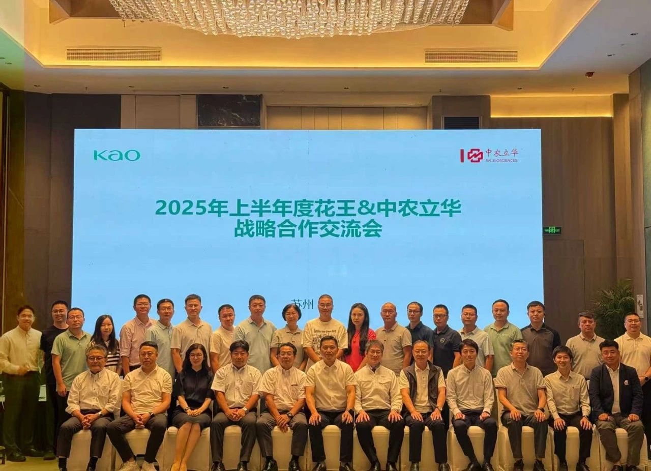 为进一步深化战略协同、共谋未来发展,中农立华与日本花王于7月在苏州举办交流会。中农立华管理层、业务及技术团队与花王日本研发中心、国内农化事业团队齐聚一堂,聚焦现有产品合作的深化与未来创新方向的探索,展开热烈而富有成效的讨论,为双方伙伴关系注入强劲动能。